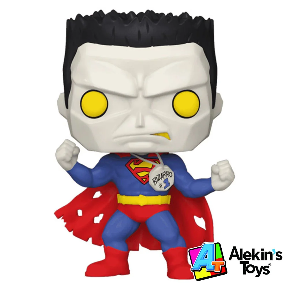 Bizarro la versión defectuosa y opuesta de Superman, a menudo creada a través de un proceso de duplicación fallido. Físicamente es una imagen imperfecta (con piel calcárea y habla confusa) y mentalmente es ilógico, haciendo lo contrario de lo que hace Superman. Su lema ¡Yo no soy Supermán! ¡Yo soy Bizarro! hizo que este personaje se volviera un personaje iconico de los comics y ahora llega como funko pop en una pieza exclusiva de la San Diego Comi-Con del 2024, una pieza super limitada y exclusiva por ser parte unicamente de convención,