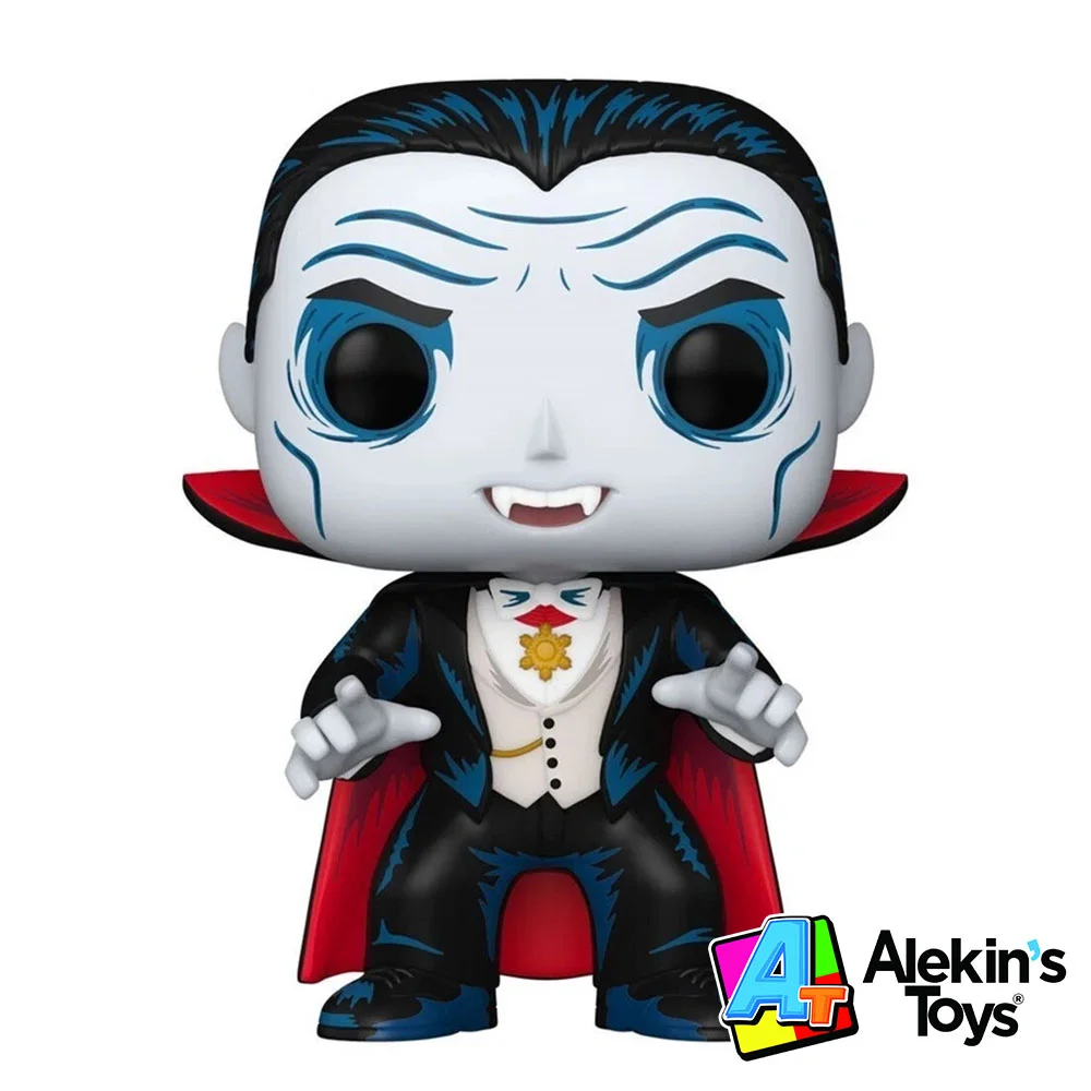 El Drácula el Conde Drácula de la película de 1931 un vampiro elegante y enigmático con acento extranjero y un porte hipnótico, vestido con una capa negra y un esmoquin. El personaje iconico que se convirtió en el arquetipo visual y de comportamiento del vampiro en la cultura popular, llega ahora como funko pop en una figura que no puedes perderte!
