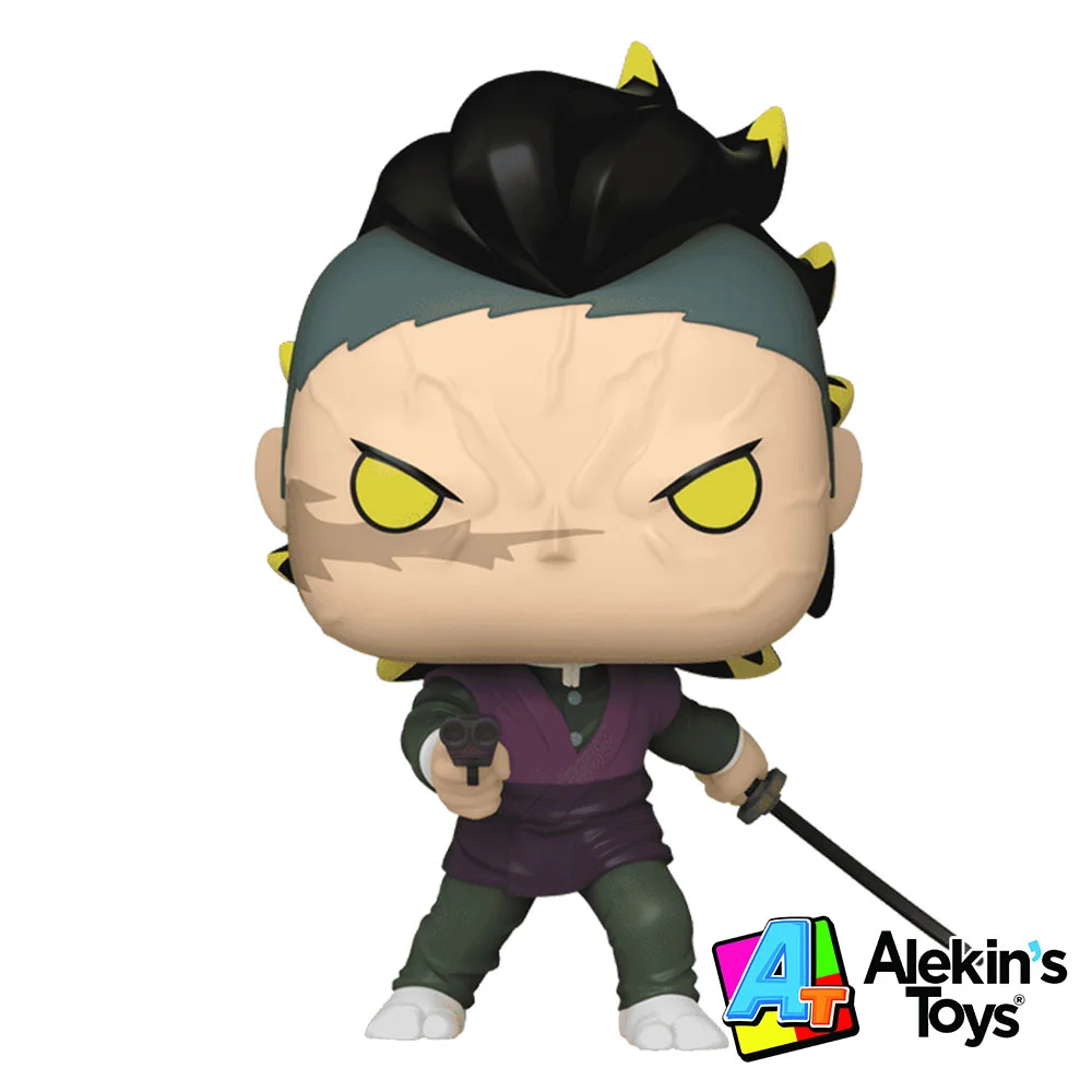 Genya Shinazugawa el Cazador de Demonios que utiliza un método de combate único: comer carne de demonio para ganar temporalmente fuerza, velocidad y regeneración demoníaca, el unico cazador que no puede dominar ninguna respiracion lo cual hace que combata con una mini escopeta y su Nichirin Blade, el hermano menor de Sanemi Shinazugawa (el Pilar del Viento) llega a la familia Pop y no te puedes perder esta pieza de Genya y hazlo parte de tu colección.
