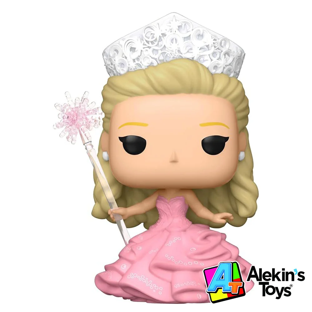 Es el icónico y deslumbrante vestido de gala que usa Glinda la Bruja Buena en el musical Wicked, a menudo para sus entradas triunfales. El traje es grande, muy detallado, brillante y generalmente de color rosa pálido y está diseñado para evocar la imagen de una burbuja mágica, llega como funko pop para ser parte de tu colección no te pierdas esta colección de la ultima pelicula The Wicked.