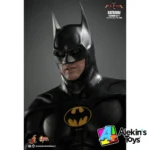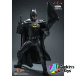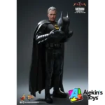 La figura, fiel a la película, capturó a Michael Keaton como Batman con su traje moderno de The Flash a escala 1/6, con exquisitos detalles restaurados con delicadeza y belleza. Presenta una cabeza esculpida de Bruce Wayne de nuevo desarrollo y una cabeza con capucha de Batman con caras inferiores intercambiables. Ambas cabezas incluyen un sistema independiente de globos oculares giratorios para ajustar el ángulo. El cuerpo especializado resalta la forma musculosa de Batman y permite una gran articulación. Incluye un Batitraje altamente detallado y capas de tela intercambiables para replicar el detalle de la textura. Incluye dispositivos exclusivos de Batman, como un lanzador de cuerdas, un batarang con cuerda, ruedas ninja, control remoto, temporizador de bombas y un soporte de exhibición con iluminación LED especialmente diseñado con el logotipo de Batman para que puedas montar tu propia Batcueva.