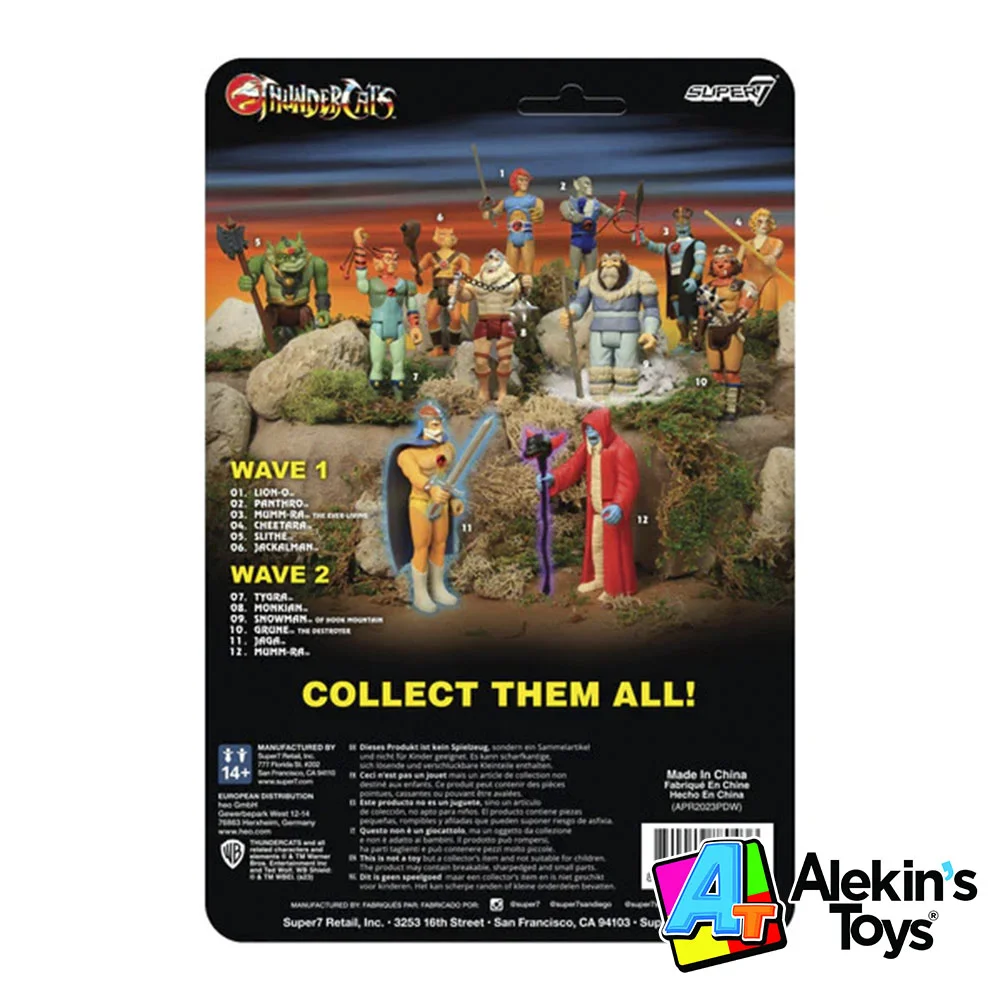Super 7 ReAction son figuras de acción estilo retro, a menudo de 3.75 pulgadas de altura, inspiradas en los diseños y la estética de los juguetes clásicos de los años 70’s y 80′ s. Se caracterizan por su empaque y con un diseño de articulación limitada para la figura, lo que les da una apariencia y sensación vintage.