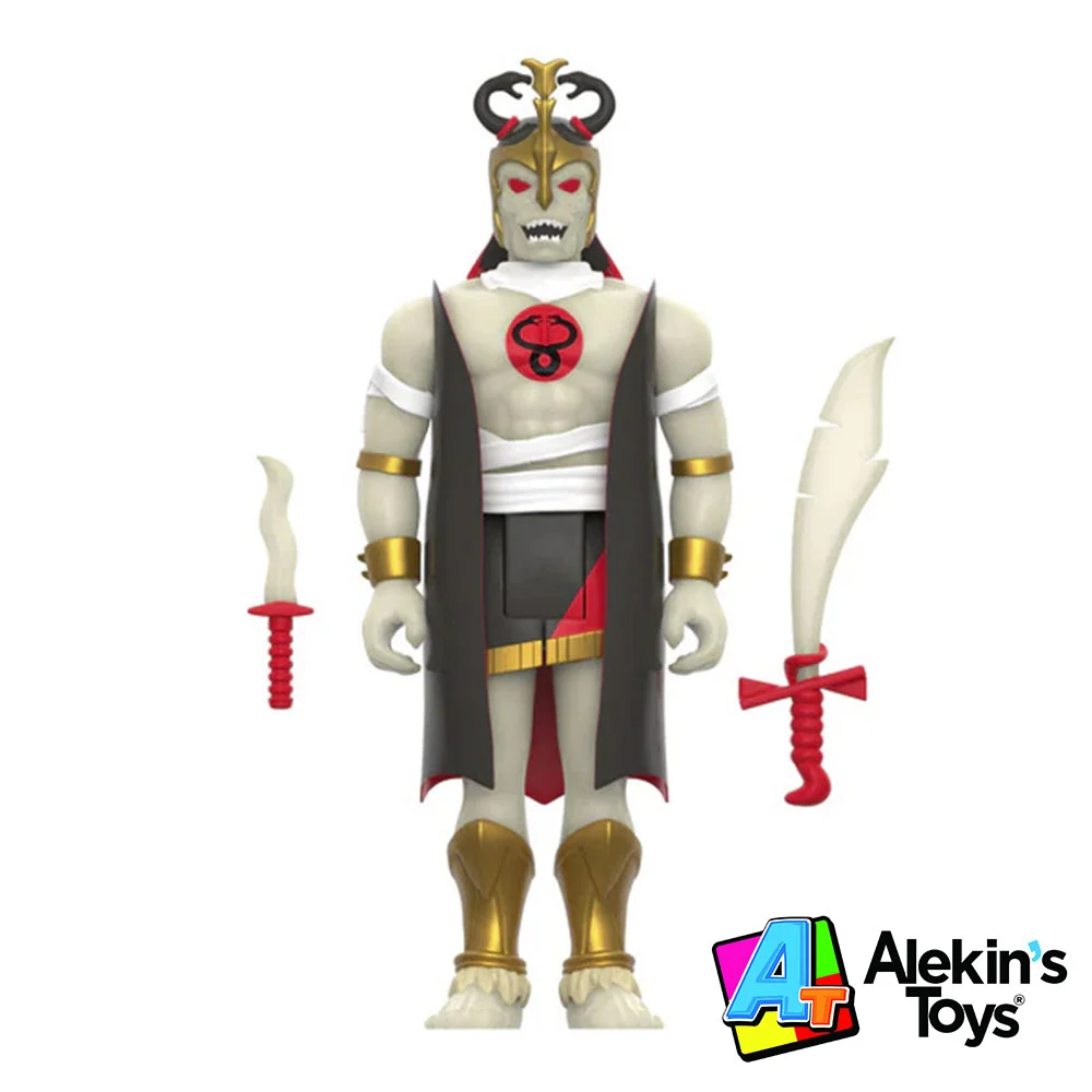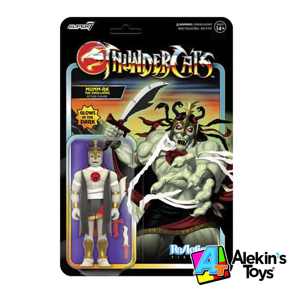 ¡Mumm-Ra™ irradia una intención tan intensa que brilla! Esta figura articulada de 9,5 cm de Mumm-Ra, el Eterno, de ThunderCats™, presenta al poderoso hechicero en un material que brilla en la oscuridad e incluye espada y daga también brillantes. Incluso cuando se apague la luz, la figura de reacción de Mumm-Ra, el Eterno, de ThunderCats te recordará que sin los ThunderCats, ¡tu colección estaría en grave peligro!